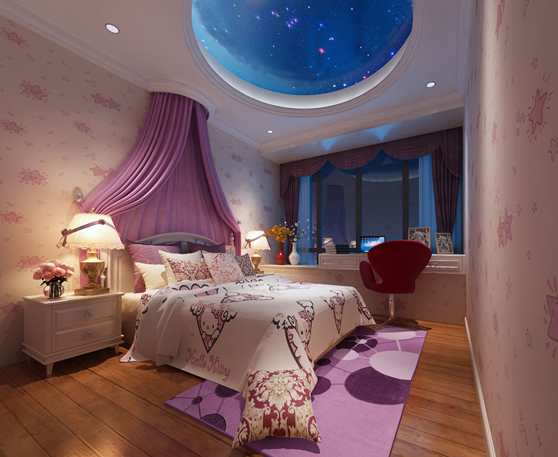 第二公主風:每個女孩子都有著一個公主夢,一個大大的窗口,室內(nèi)有著一張柔軟舒適的大床,在小的時候可以在室內(nèi)放置一些卡通風格的公仔長大之后可以換成簡約大氣的風格,而室內(nèi)以粉色裝飾四周加上天花板上裝飾這一個“星空”對任何一個女孩子來說都有著一種致命的吸引力。(幼兒園設計)