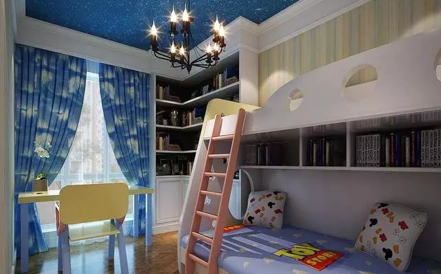 首先我們對屋內的色彩選用要恰當,如果是男孩子的話,我們可以盡量多選一些藍色、綠色和黃色這樣的鮮艷色彩,當然也可以添加一些黑色和白色。如果是女孩子的話,就可以多選擇粉色、黃色和粉色這樣的色彩。孩子們對色彩很是敏感,像天花板、地面、墻面、窗簾、床罩等我們都可以選擇一些明亮的色彩,或者直接用一些鮮艷的飾品來裝飾墻面。