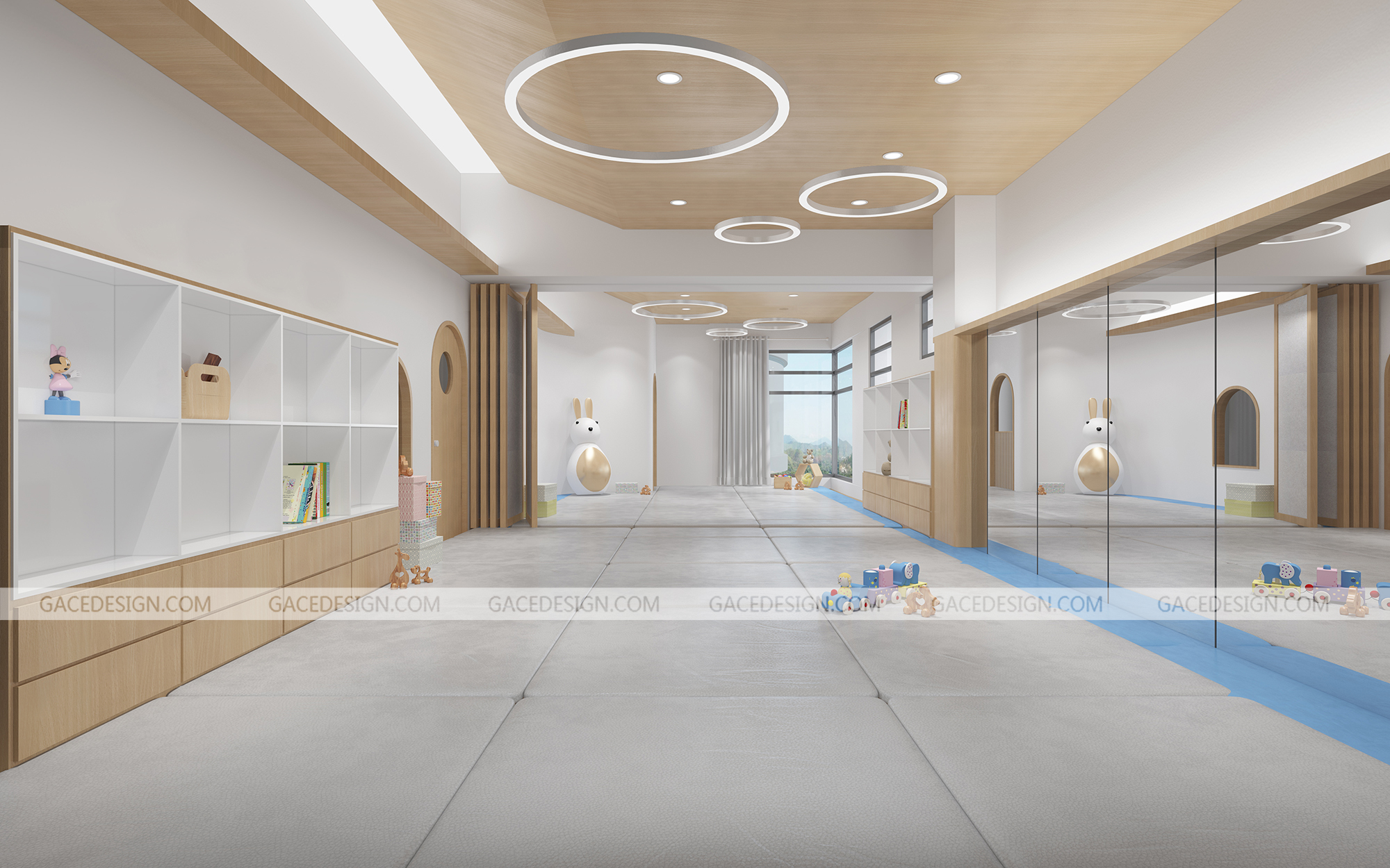 托育中心活動室整體設(shè)計布局,要有利于孩子們的學(xué)習(xí)操作及環(huán)境探索,強(qiáng)調(diào)和諧性和美觀度。活動室內(nèi),不僅要有寬敞的足夠空間,還要將各空間活動區(qū)進(jìn)行合理的分區(qū)設(shè)計。下面,我們就托育中心活動室的整體布局要求,進(jìn)行整體的分析: